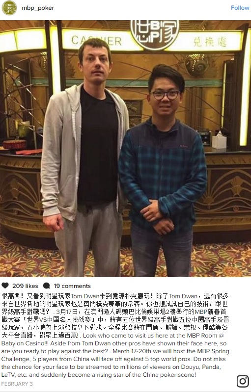 Macau Billionaire Poker-ის მიერ ინსტაგრამით გავრცელებულ ფოტოზე ტომ დუანი Babylon Casino-ში რუხ კაპიუშონსა და სპორტულ შარვალში გამოწყობილი პოზირებს - სწორედ ის ტანსაცმელია, რომელიც დუანს "2+2 ფორუმზე" გამოქვეყნებულ ფოტოში აცვია. დენიელ ქეითსის ინფორმაციით, დუანი მისთვის შეუსაბამოდ მაღალ ლიმიტებზე თამაშობდა და საკმაოდ წარუმატებლადაც, რის გამოც მას შესაძლოა ახალი ტანსაცმლის შეძენის საშუალებაც კი არ აქვს. მართალია ლეგენდარულ მოთამაშეზე გავრცელებული ჭორები ერთმანეთზე უცნაურ და კომიკურ ხასიათს ატარებენ, მაგრამ ფაქტია, რომ ტომ დუანი კვლავ აღმოსავლეთ ნახევარსფეროში რჩება, სადაც წარმოუდგენლად მაღალ ლიმიტებზე თამაშობს და, როგორც ჩანს, ყველაფერი კარგად მიდის. ტომ დუანი იმ კატეგორიის მოთამაშეებში ვერასდროს მოხვდება, ვინც წამგებიან თამაშში წლობით გაჩერებას გადაწყვეტს.