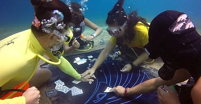 "ისინი საკმაოდ გამოცდილი მყვინთავები იყვნენ, - ამბობს ბაზაროვი, - როგორც ხედავთ, წყლის ქვეშ პოკერის თამაში სრულიად შესაძლებელია, მაგრამ ამ დროს ძალიან მნიშვნელოვანია ჰაერის მარაგზე თვალყურის დევნება." ვიდეოში აღბეჭდილ წყალქვეშა სესიაში პოკერის სრული ტრადიციებია დაცული: ბანქო, ფული და სათვალე. ერთადერთი რამ, რაც გაუგებარი რჩება, ისაა თუ ვინ იყო თამაშში მონაწილეთაგან "ფიში" და ვინ "შარქი"?